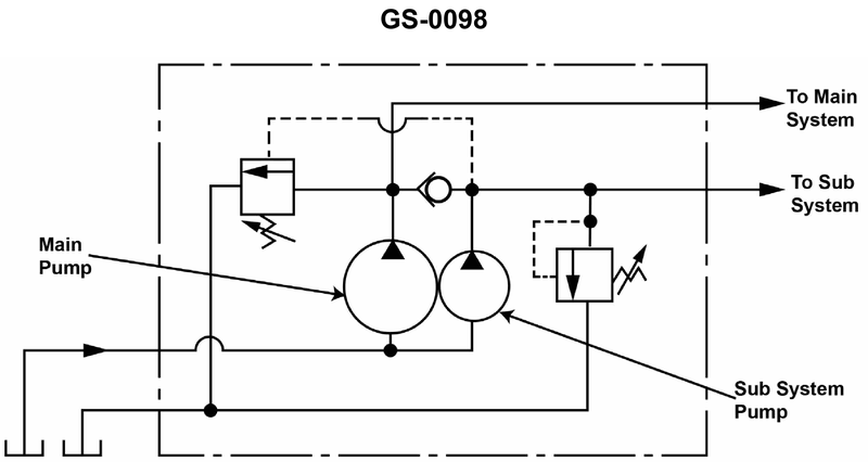 (1.2.8.2-2) The illustrated hydraulic pump graphic symbol is used to depict a __________. Illustration GS-0098