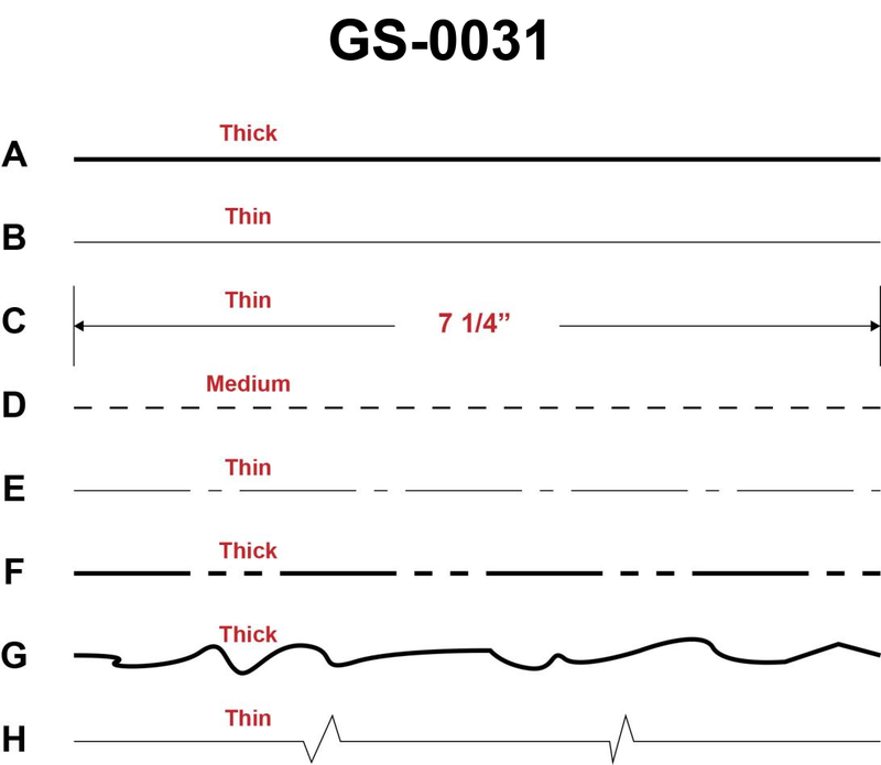 A dimension line, as used in a drawing or blueprint, is represented by which of the figures shown in the illustration? Illustration GS-0031