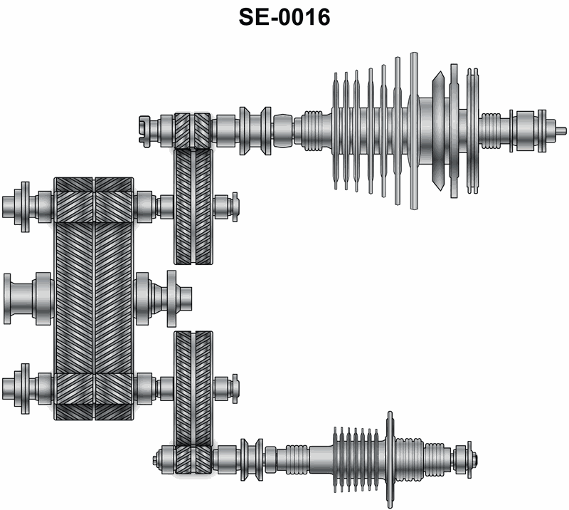 turning the same rotation of the high-speed pinion on the low-pressure side