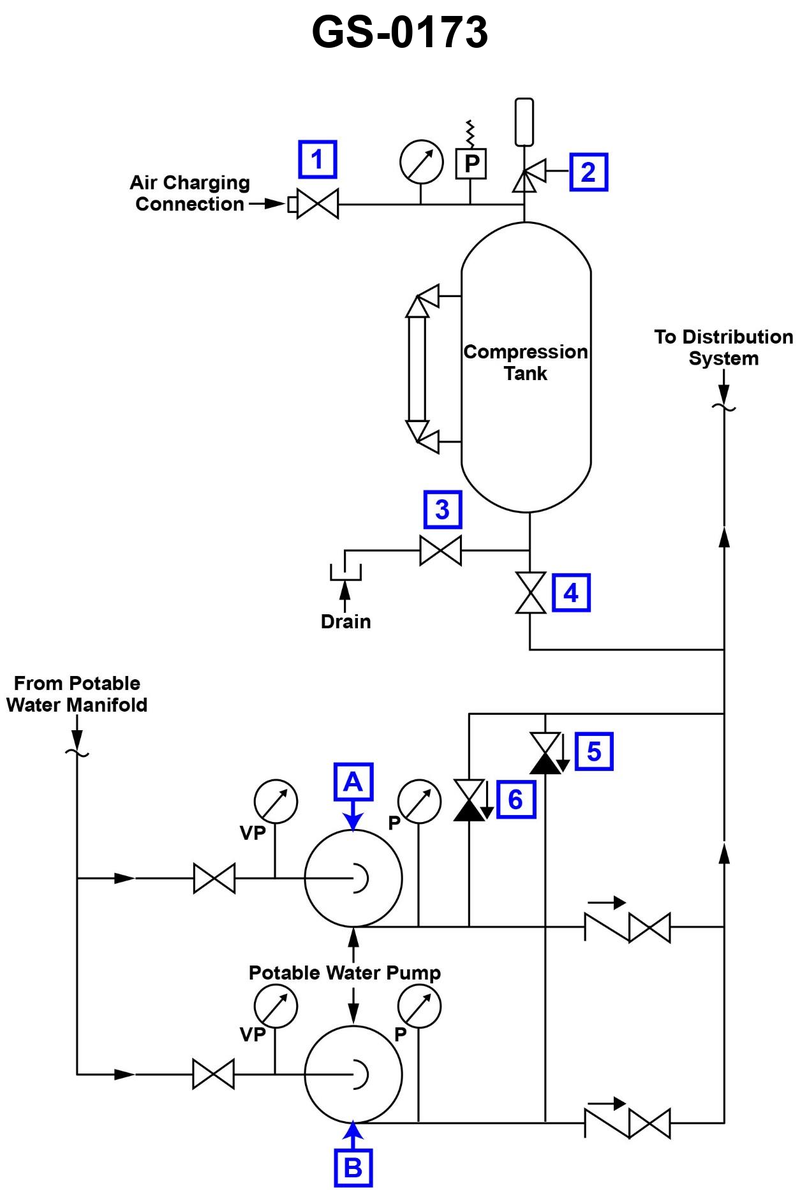 According to the illustration, which of the following conditions would most likely cause Pump "A" to short cycle? Illustration GS-0173