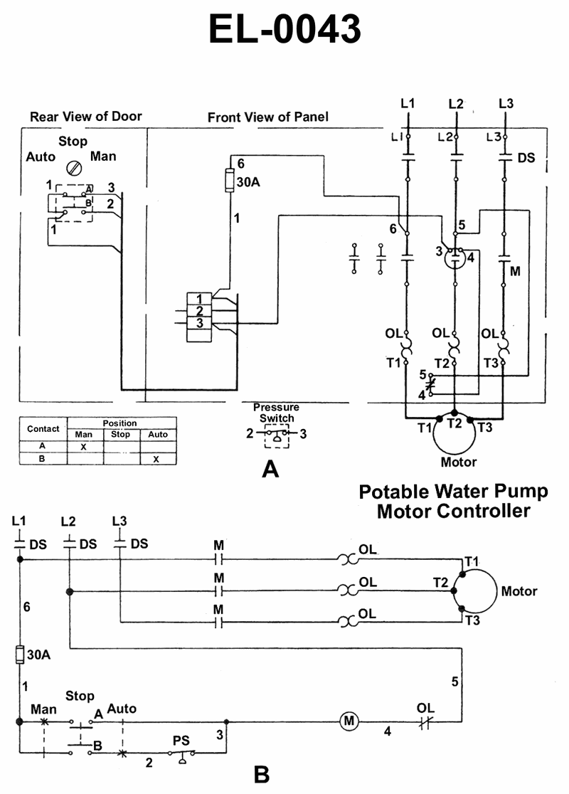 As shown in figure "A" and "B" of the illustration, the potable water pump is short-cycling by the action of the pressure switch as a result of an unusually high level in the potable water hydro- pneumatic header tank. What is most likely the cause? Illustration EL-0043