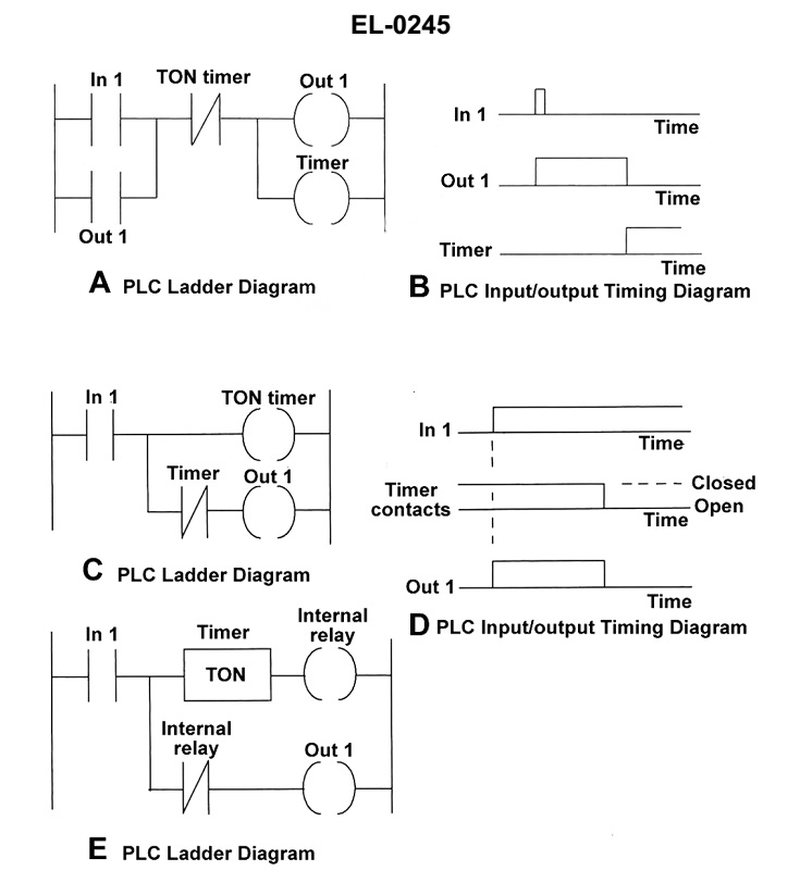 • How the timing diagram in figure B shows the relationship between In 1, Out 1, and the Timer signal