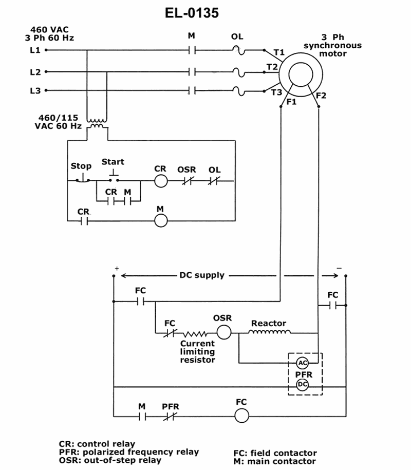 as the motor approaches synchronous speed the voltage induced across the rotor winding decays in amplitude and frequency causing the polarized frequency relay to pick up which de-energizes the field contactor, thus disconnecting the DC field across the field winding