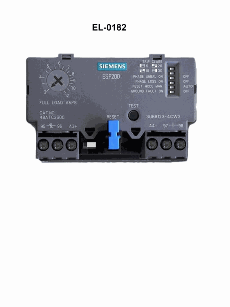 As shown in the illustrated electronic overload relay, if it is desired to connect the relay to the operating coil for tripping purposes, what terminals would the operating coil be associated with in completing the series circuit? See illustration EL-0182.