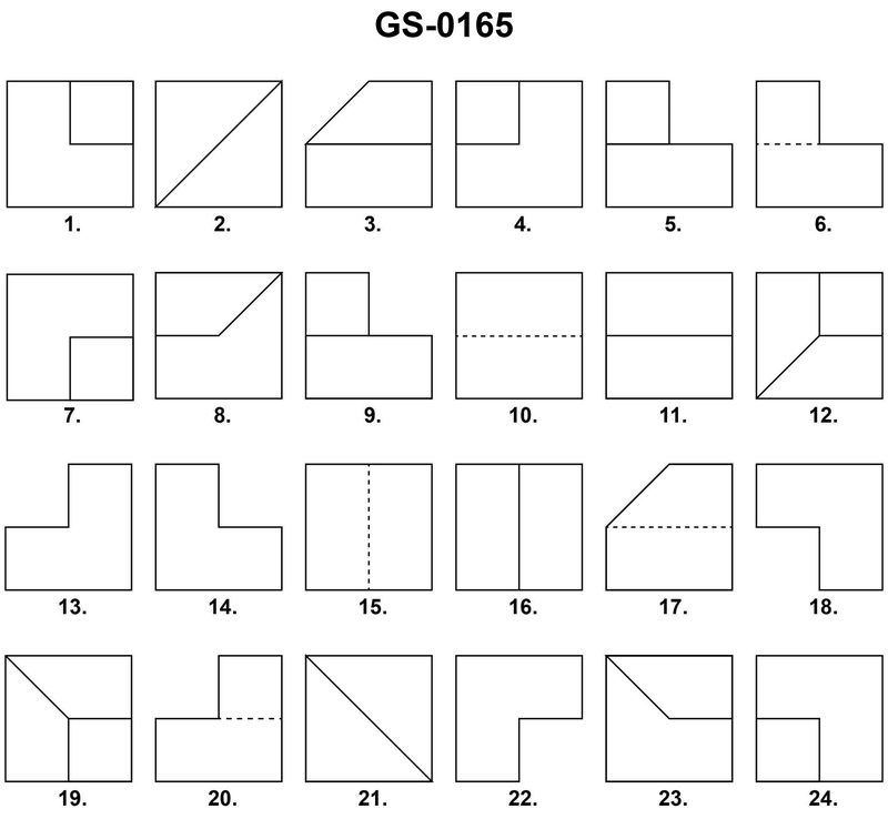 As shown in the illustration, if figure "21" indicates the "TOP VIEW" of an orthographic projection, and figure "11" indicates the "FRONT VIEW", which figure would best represent the correct "RIGHT SIDE VIEW"? Illustration GS-0165