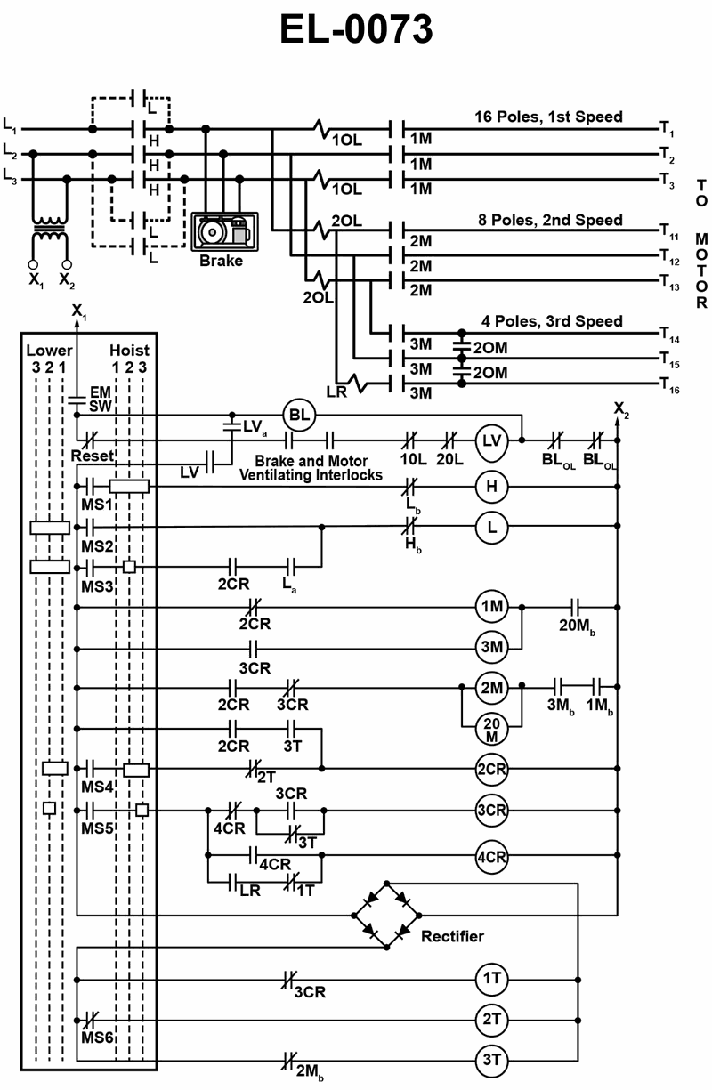 • Double‑check coil labels: make sure you are not confusing contactor coils (1M, H, LV) with the time‑delay relay coils (1T, 2T, 3T) when reading the diagram.