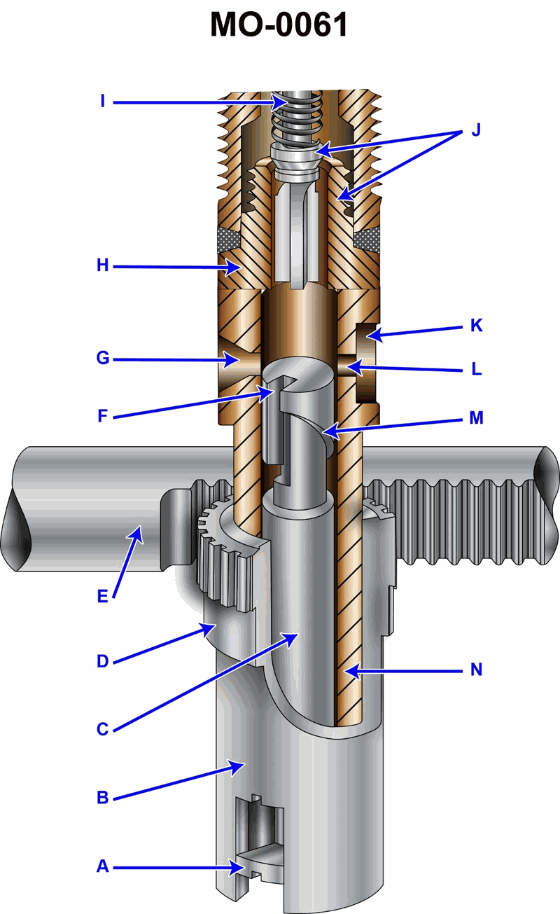 As shown in the illustration of the fuel injection pump, the function of the area designated as "G" is to __________. Illustration MO-0061