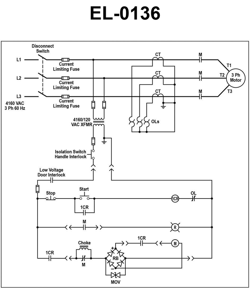 As shown in the illustration, what type of motor and motor starter are featured? Illustration EL-0136