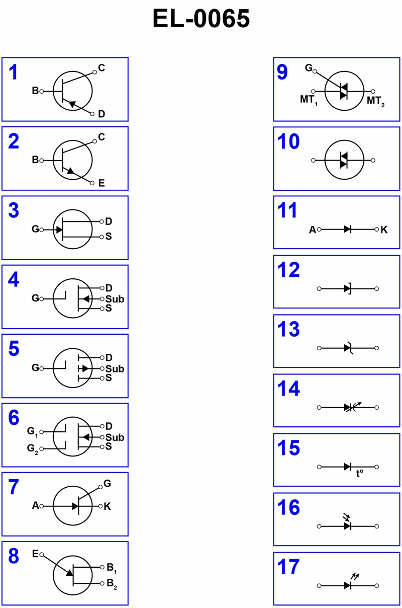 ⢠Focus on symbols 1 and 2 only; they are the bipolar junction transistor (BJT) symbols in this illustration.