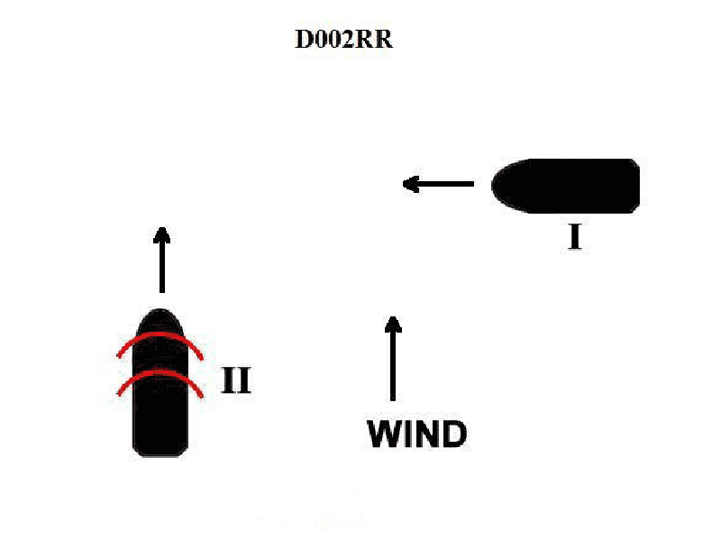 BOTH INTERNATIONAL & INLAND In illustration D002RR below, vessel I is a power-driven vessel. Vessel II is a sailing vessel with the wind dead aft. Which statement about this situation is correct?