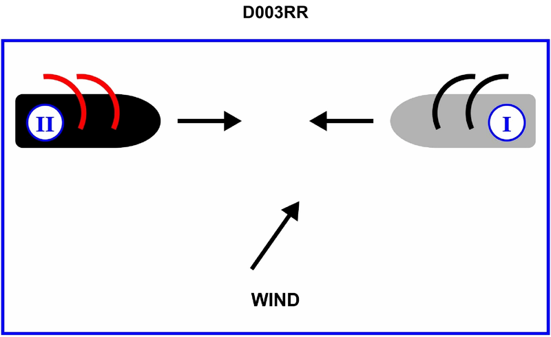 BOTH INTERNATIONAL & INLAND Two sailing vessels are approaching each other as shown in illustration D003RR below. Which statement is correct?