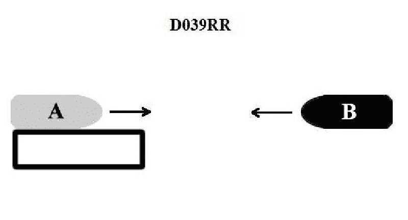 BOTH INTERNATIONAL & INLAND You are on vessel "A" towing a barge alongside and meeting power-driven vessel "B" as shown in illustration D039RR below. Which action should you take?