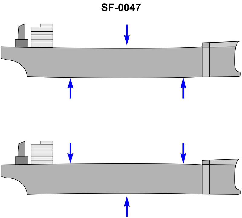 Following cargo loading operations, your vessel is experiencing an excessive at-sea sagging bending stress as shown in the illustration. What should you do to reduce the bending moment? Illustration SF-0047