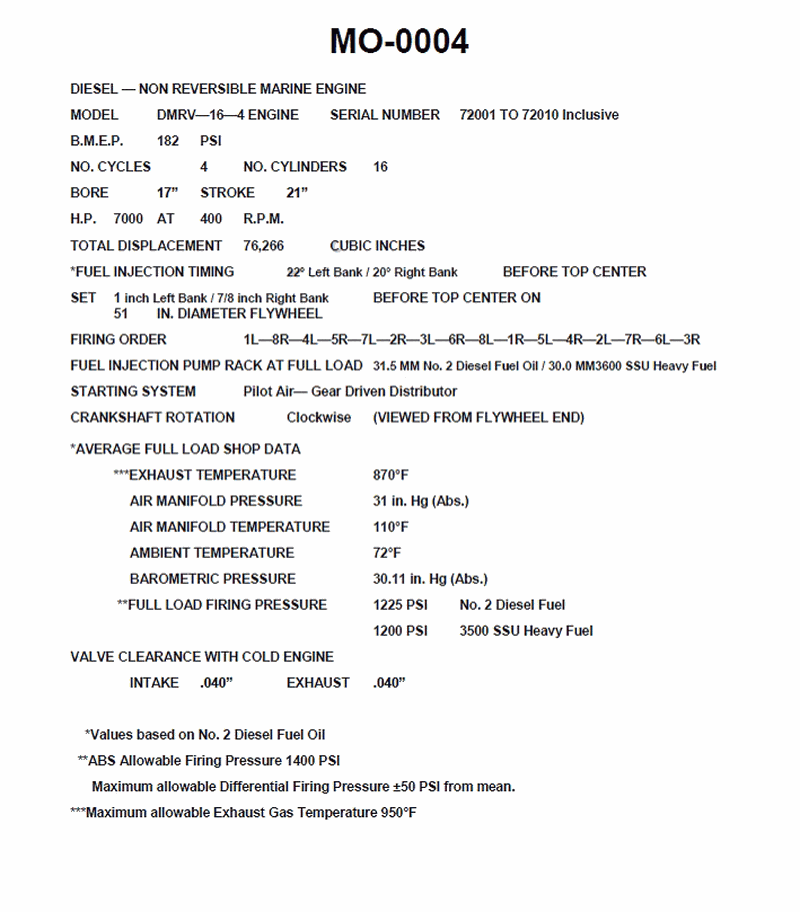 From the engine data given in the illustration, what is the full load air manifold pressure? See illustration MO-0004.