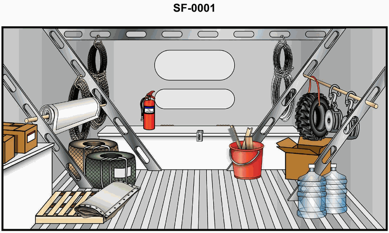 β’ List the specific items you can clearly see in the illustration (boxes, pallet, rolls, tires, ropes, containers, etc.). Ask yourself: which general fuel category do MOST of these belong to?