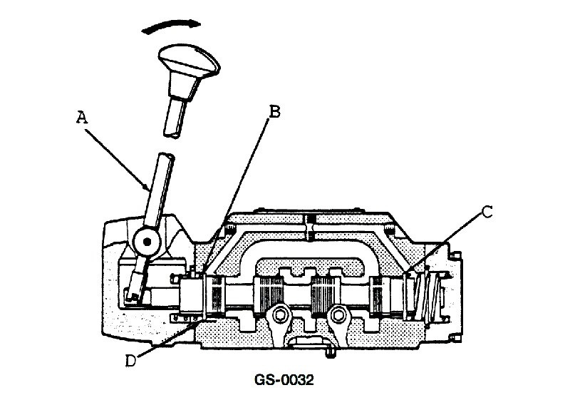 If the operator releases the handle of the illustrated device while the system output is in motion, the valve will __________. See illustration GS-0032.