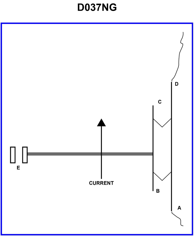 Illustration D037NG below represents a movable dam. If there is high water and the wickets are down so that there is an unobstructed navigable pass through the dam, what light(s) will be shown at D if the lock walls and piers are not awash?
