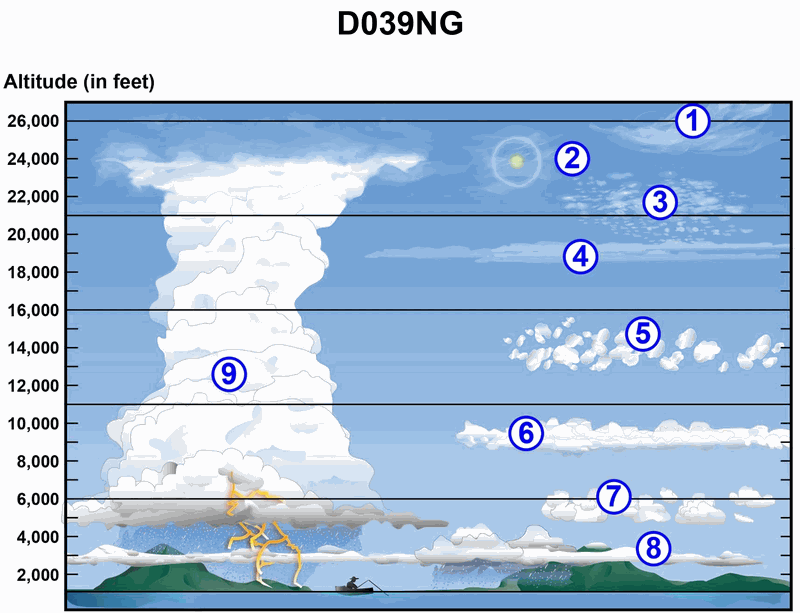 In illustration D039NG below, what type of cloud is indicated by the number five?