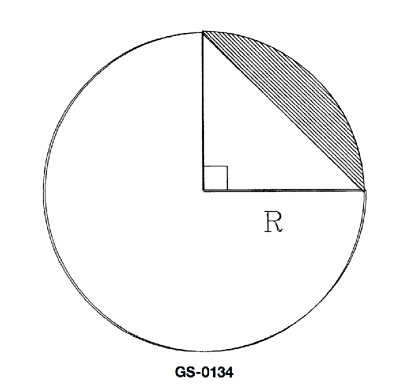 In the circle illustrated, the circumference is 157.6 inches. What is the area of the shaded portion? See illustration GS-0134.
