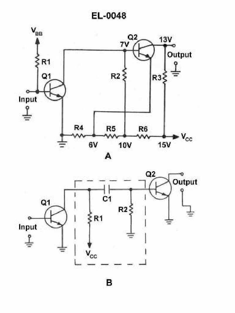 In the illustrated circuit, what is one advantage of the RC coupling over a direct coupling? See illustration EL-0048.