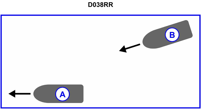 INLAND ONLY You are on power-driven vessel "A" and power-driven vessel "B" desires to overtake you on the starboard side as shown in illustration D038RR below. After the vessels have exchanged one blast signals what action should you take?