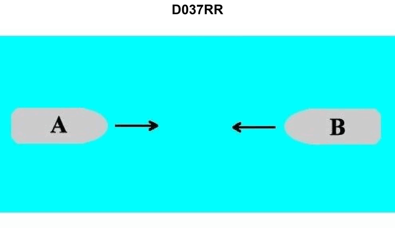 INTERNATIONAL ONLY Two power-driven vessels are meeting in the situation as shown in illustration D037RR below. What does two short blasts from either vessel mean?