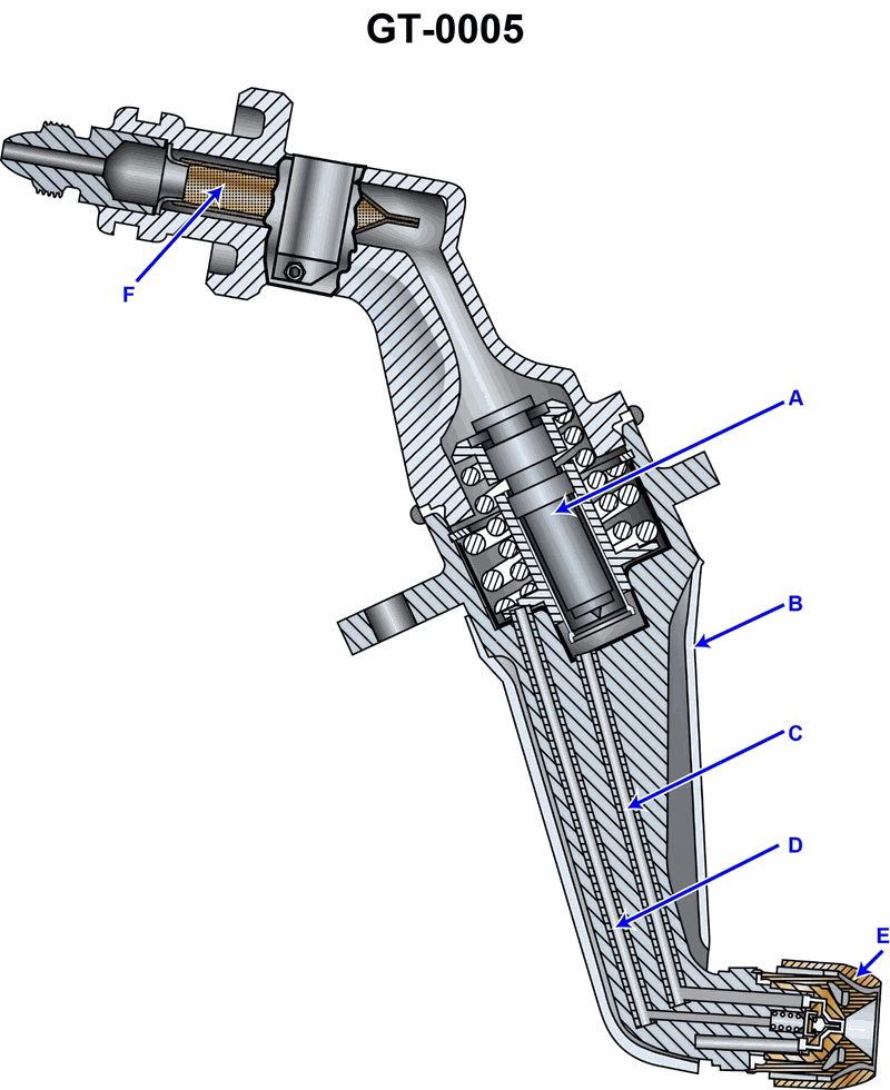 On marine gas turbines equipped with fuel oil nozzles as shown in the illustration, the minimum fuel oil manifold pressure for proper operation should be _________. Illustration GT-0005
