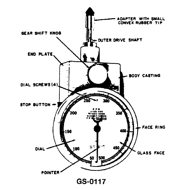 The adapter for the tachometer shown in the illustration is designed for reading shaft RPM as long as the shaft is accessible __________. See illustration GS-0117.