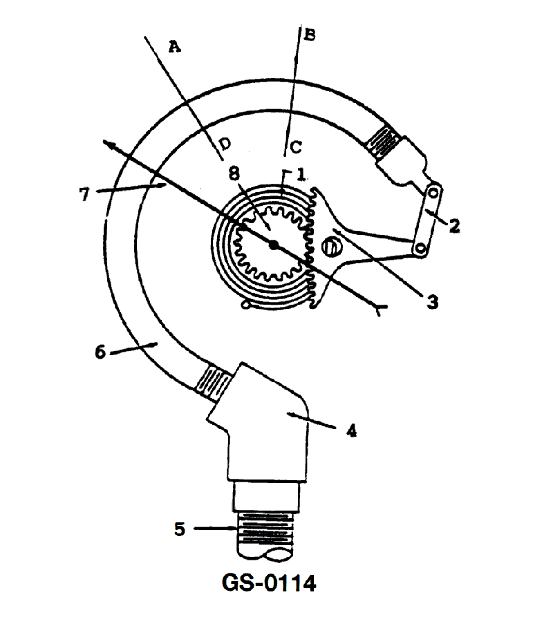 The Bourdon tube-type pressure gage will begin to straighten out when pressure is applied due to the __________. See illustration GS-0114.