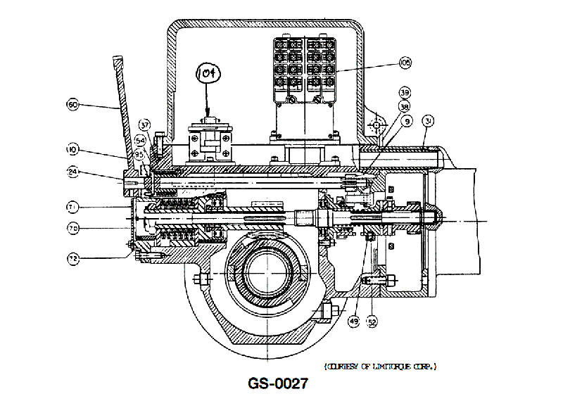 The device shown in the illustration is used to open and close a butterfly valve. The motor will be typically secured during the closing phase by the use of the __________. See illustration GS-0027.