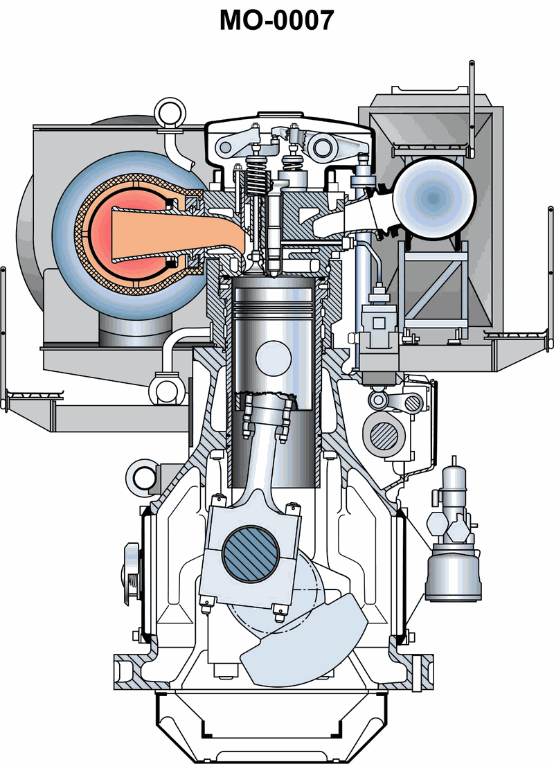The diesel engine shown in the illustration is a __________. Illustration MO-0007