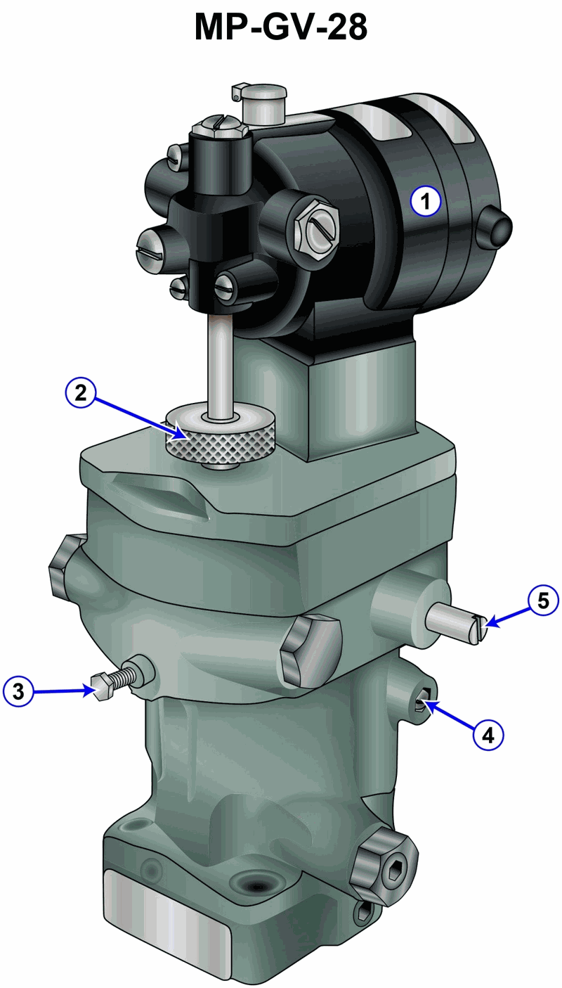 The diesel generators on your uninspected fishing trawler are fitted with speed control governors of the type shown in the illustration. If an adjustment is made to item #2, what will change? Illustration MO-0160