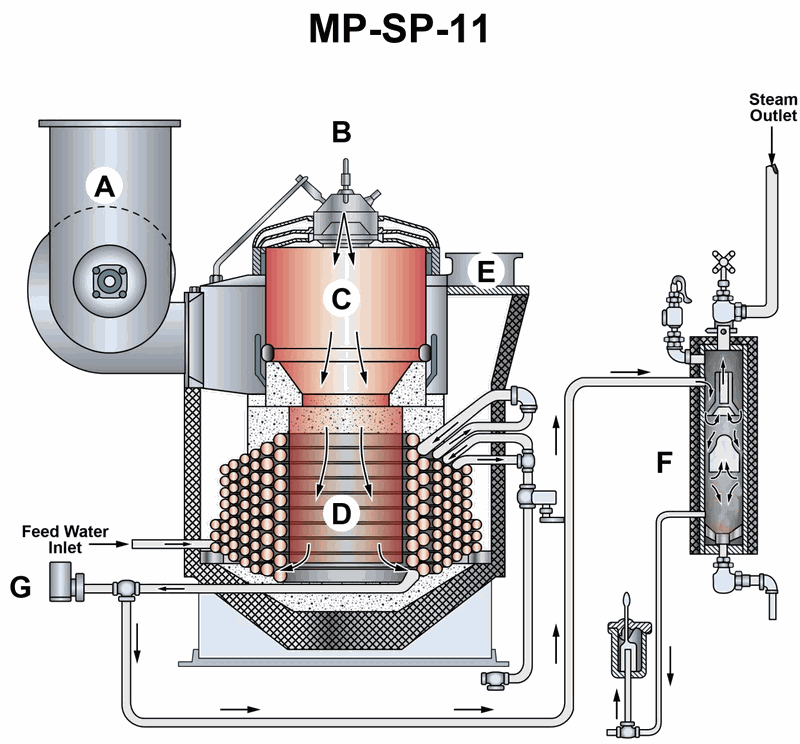 The boiler is of the fire-tube type and utilizes forced circulation.