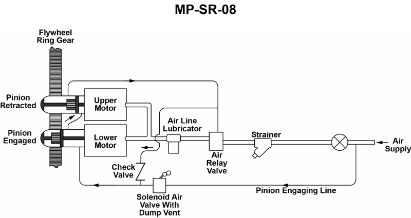 The main propulsion diesel engines fitted on your fishing industry factory ship are started with compressed air using the system illustrated. What would be the FIRST consequence of having the start solenoid valve energized open by depressing the start button? Illustration MO-0200