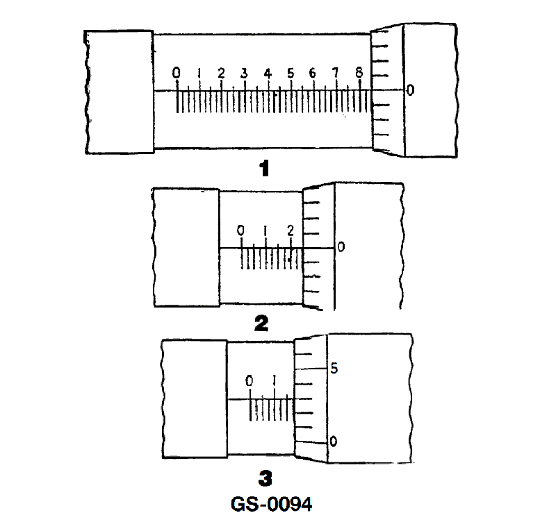 The reading on the micrometer scale shown in figure "3" in the illustration is __________. See illustration GS-0094.