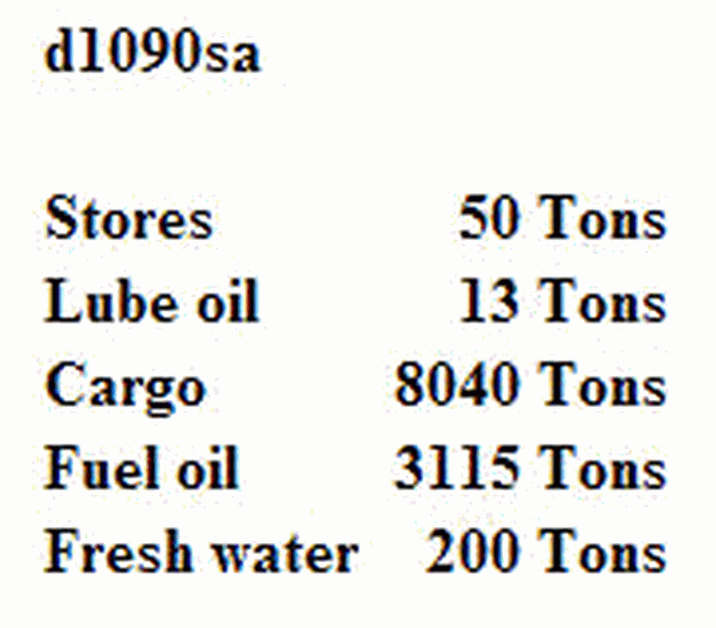 The SS AMERICAN MARINER has the following drafts: FWD 09'-00", AFT 15'- 11.5". Upon completion of loading and bunkering the items shown in table ST-0025 below will be on board. Use the white pages of The Stability Data Reference Book to determine the minimum GM required to meet a one compartment standard.