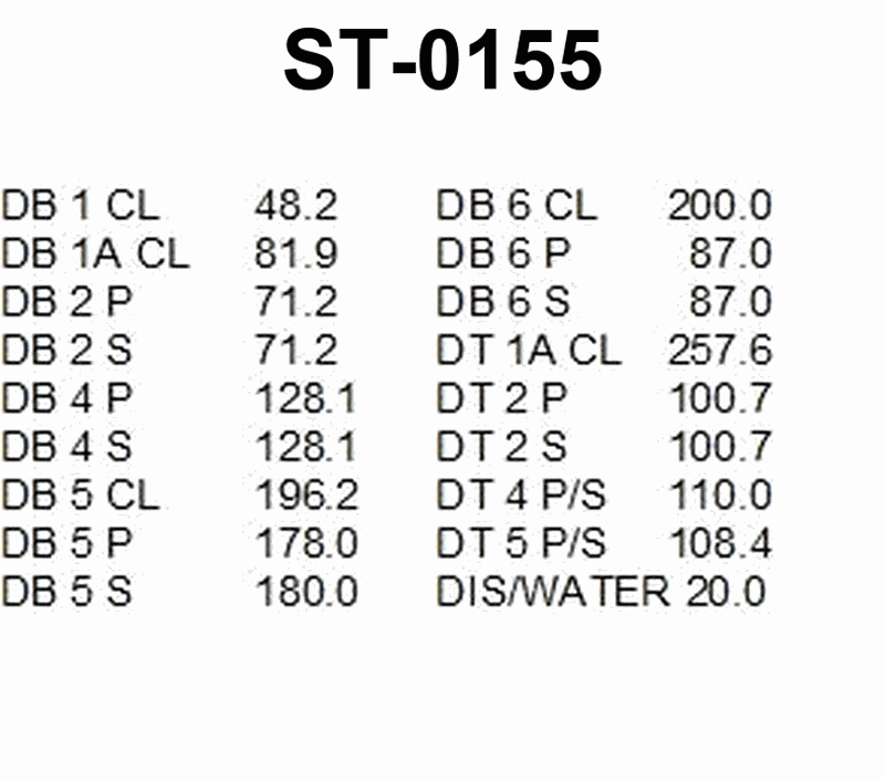 The SS AMERICAN MARINER has the liquid load shown in table ST-0155 below. Use the white pages of The Stability Data Reference Book to determine the LCG-FP of the liquid load.