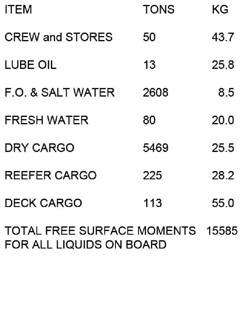 • To get KG, you need total vertical moments ÷ total displacement, using all weights in the load table plus lightship.