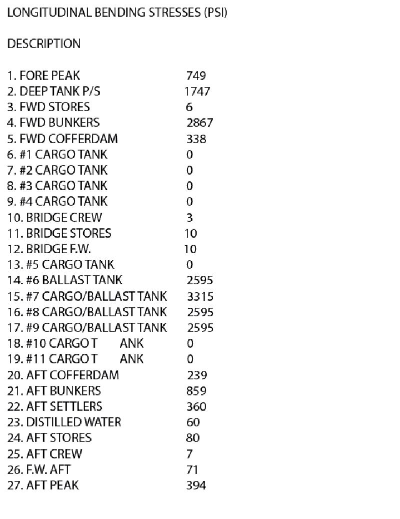 The tankship Northland is loaded as shown in table BL-0023 below. Use the salmon colored pages in the Stability Data Reference Book to determine the hogging numeral.