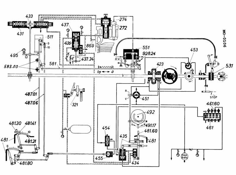 The termination of fuel injection for a large low speed diesel engine is initiated by __________. See illustration MO-0106.