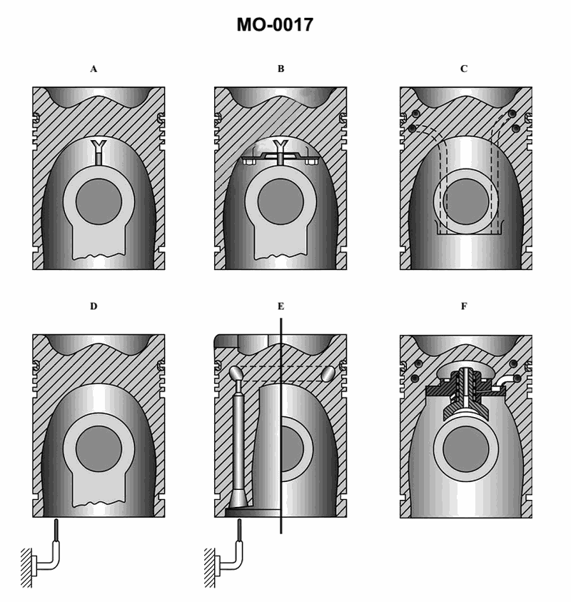 The upper piston compression ring can be protected from overheating by a heat dam. This physical concept is shown in the illustration and designated by the figure lettered as __________. See illustration MO-0017.