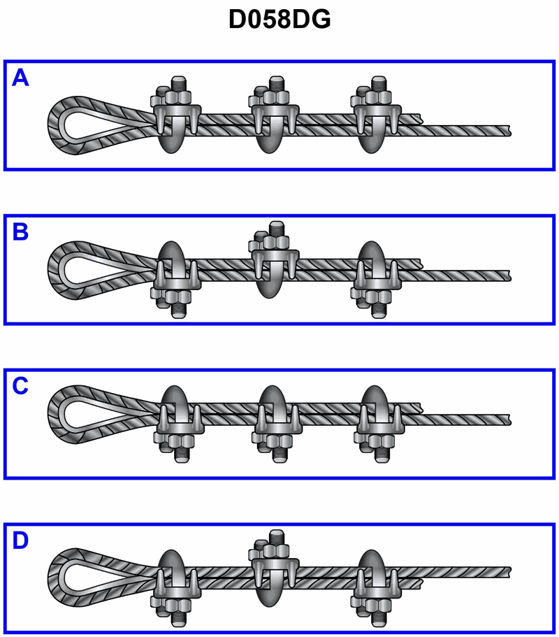Using illustration D058DG below, which of the figures is the preferred method of forming a temporary eye splice using wire rope clips?