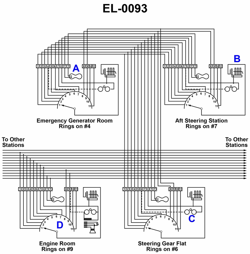 • Study how the symbol at label B is drawn compared to the other symbols at each station (crank handle, coils, lamps, etc.).