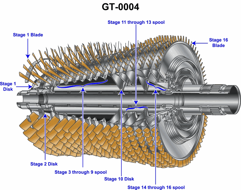 What is the designed compressor pressure ratio of the gas turbine compressor rotor shown in the illustration? Illustration GT-0004