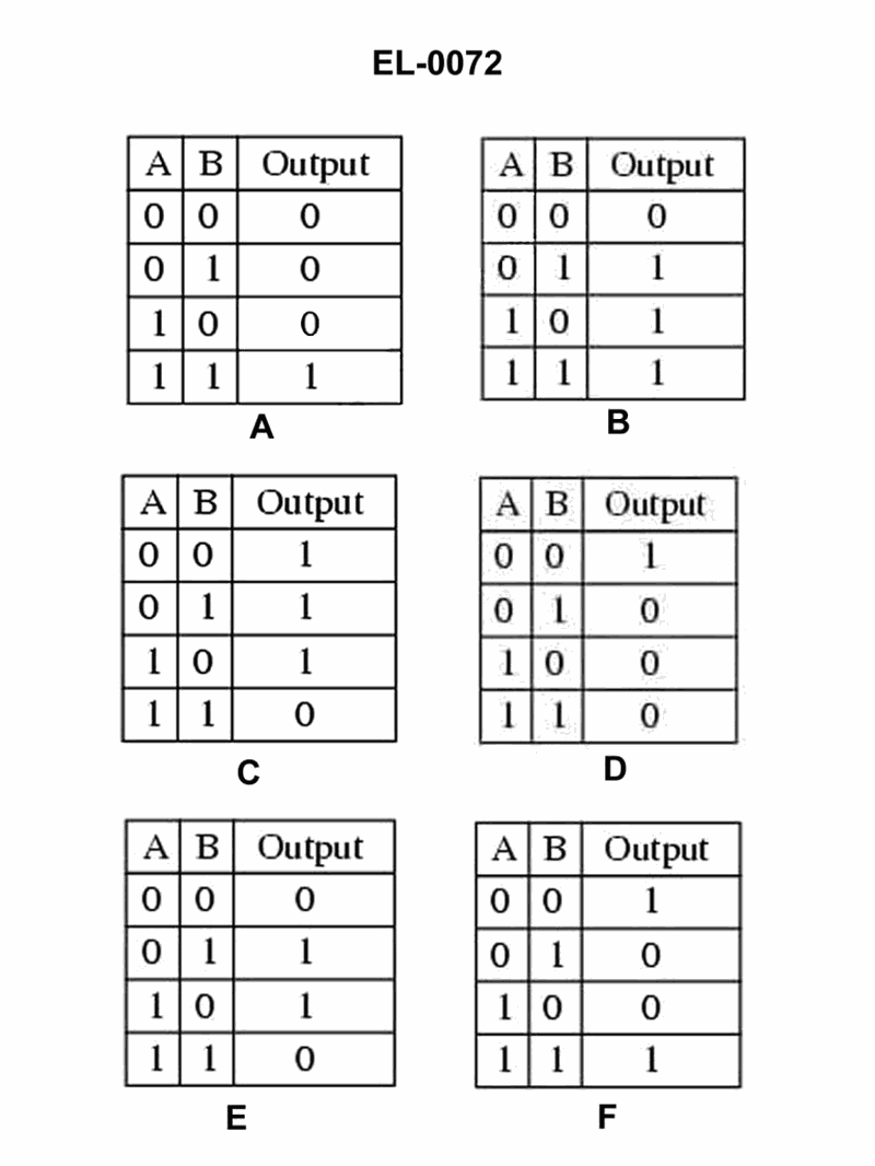 What type of logic gate is indicated by the truth table shown in figure "A" the illustration? See illustration EL-0072.