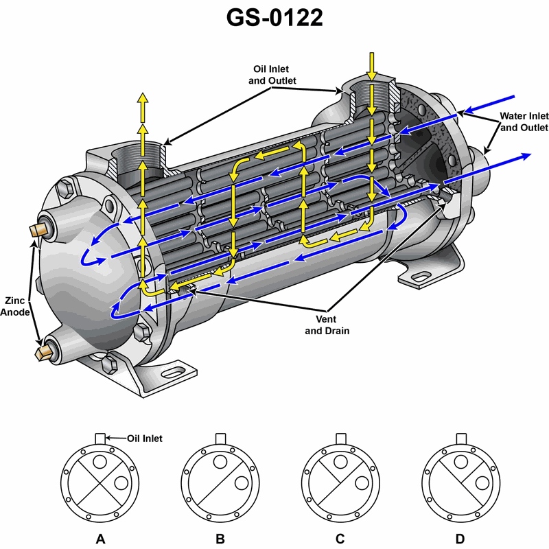 What type of lube oil cooler is shown in the illustration? Illustration GS-0122
