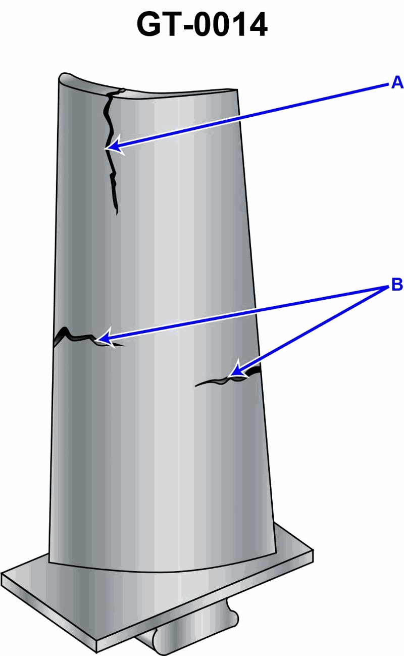 What type of metallurgical failure does Item B represent in the illustration? Illustration GT-0014