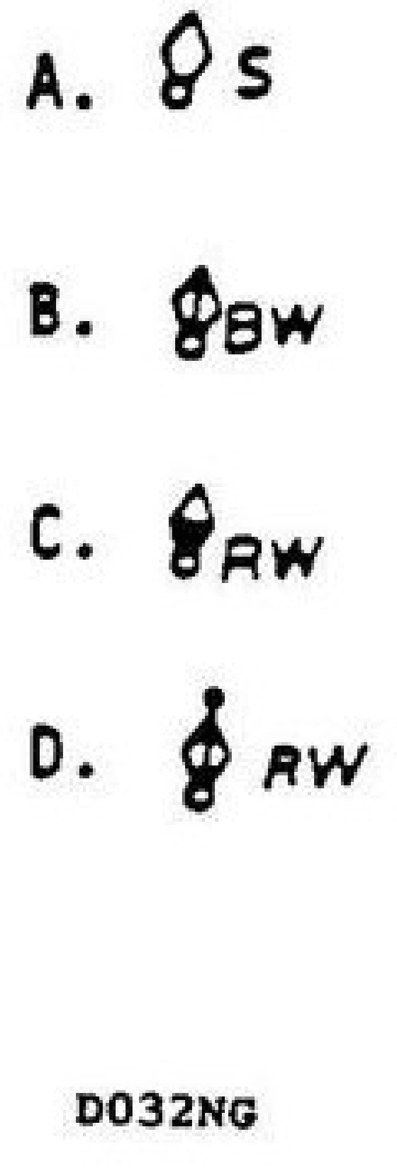Which of the buoy symbols shown in illustration D032NG below indicates a safe water mark?
