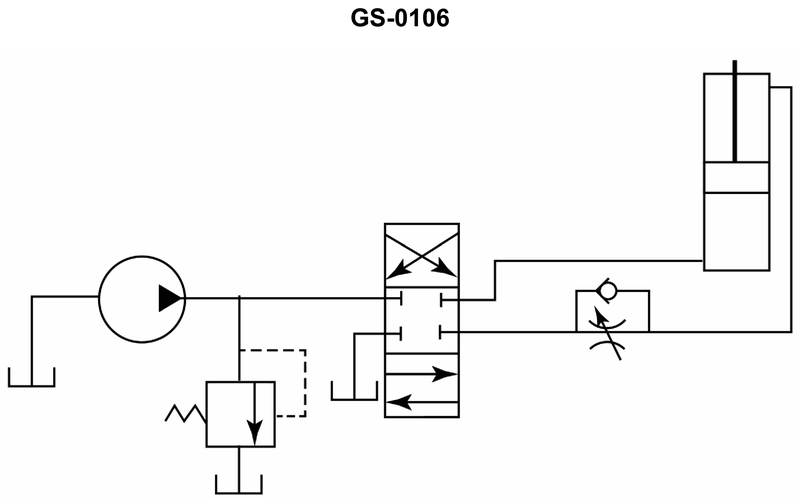 Which of the conditions listed will cause the hydraulic pump relief valve to remain open during the operation of the system? See illustration GS-0106.