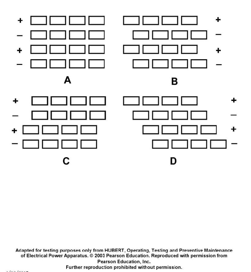 Which of the diagrams shown in the illustration depicts the proper method of aligning brushes on a commutator for a DC machine? Illustration EL-0057